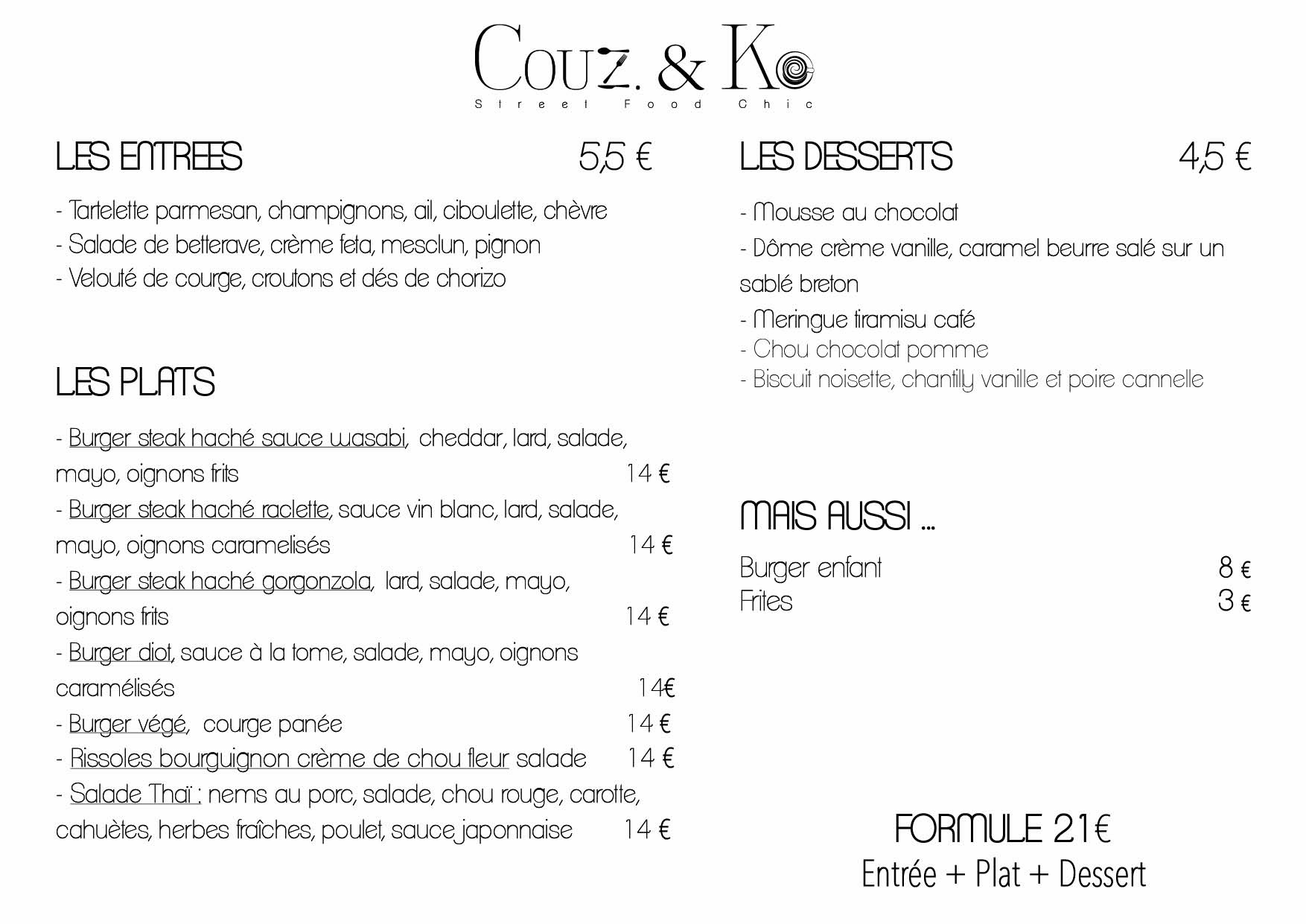 Envie de déjeuner, de dîner, de goûter ou bien de pique-niquer ? Le Couz and Ko répond à toutes vos envies !